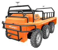 救援伴随运输机器人是一个6x6驱动,采用6台直驱轮毂电机,电子差速转向的无人平台。可以穿越狭窄的小路,陡峭的山坡和茂密的丛林。仅仅使用内部锂电储能,这辆车可以行驶50多公里 。该车的锂电驱动动力系统提供无声操作能力。该系统的模块化架构和与机器人操作系统协议的完全兼容性使得车辆易于升级,使用各种各样的模块化任务有效载荷。每个表面的硬点都允许重载荷和装甲包安全地安装在车辆的框架上。可以实现自动跟随车辆或人员行走、最大运动速度 可达≥15km/h,自动跟随目标行进,具备主动避障功能,可携带救援设备及物资进行运输,突破我国大多数道路条件下的“最后一公里”,可充当救援担架,运输伤患撤离危险区域,可配备增程式发电机提高超长续航,网络化传输机器人信息参数后台话传输管理、GPS/北斗双模定位等特点