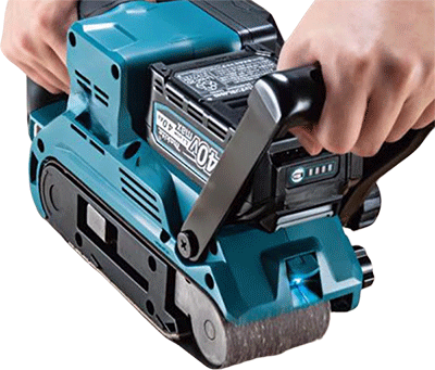 重心位于砂带的中心,减少了打磨的不规则性,使得打磨更具稳定性。将前手柄固定在0度或向后30度时,可以打磨到墙壁边缘。