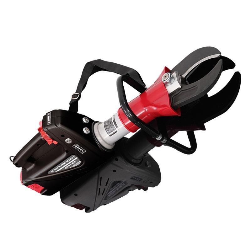 电动剪切器主体部分为高强度合金制造,刀具引进了进口工具钢材料技术,不仅保证了剪切强度而且还能保证韧性;特有的双向自锁与自动复位一体式换向手阀,方便左右手操作;符合人体工程学的C型刀片设计,能自然地把被剪切材料推向剪切力最大的刀片中心;刀片采用新型防崩溅设计,剪切时不会崩溅,避免了工作时伤害到救援人员和被救人员;产品关键部位设有保护套,保护设备同时,提高了设备使用寿命。