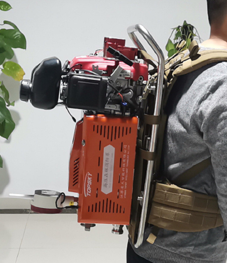 高压森林消防泵是我公司适应森林灭火而研发的超轻泵组。泵组采用了本田发动机及隔膜泵,整个泵组重量轻,结构紧凑、占地面积小、稳定性好,采用背负式+手拉式相结合,便于携带,操作简单使用人员只需简单培训即可熟练操作。可用于森林灭火中远距离输送水源到火场进行灭火,背负式远程输送高压森林消防泵也适合于中小城镇农村厂矿等消防车不能及时到达或无法深入到火灾中心的消防灭火。
