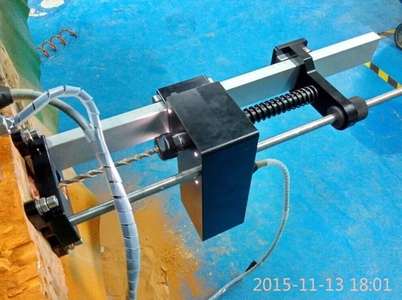 1) ★结构形式:自动推进导轨+三角支架+单独电源系统 2) ★LED灯光:配有LED探灯,可在恶劣条件下作业 3) ★推进方式: 导轨式自动推进 手动推进 可自动弹簧式 4) ★自动推进导轨:带刻度指示 5) 转向转速:正反、快慢可调 6) 工作时间:12小时 7) ★供电方式:外部独立电源箱,带控制系统显示,48V动力大容量锂电池供电 8) ★控制系统: 可控制导轨自动推进 控制单元自带电压显示,可以检测剩余电量。 控制单元带有电流显示,监测墙体负荷力,调节推进速度。 9) 钻头长度:0-400mm可调 10) 钻透种类:墙体、金属板壁、玻璃幕墙、陶瓷幕墙。 11) ★空载噪音:《35dB 12) 额定功率:200W 13) 电机配置:双电机-主电机和导轨驱动 14) 系统重量:≤6.8kg 15) 系统组成: 主机 1套 导轨1套 三脚架 1套 控制系统(含锂电池电源箱) 1套 钻头套装1套 电源线1套 防护用品1套