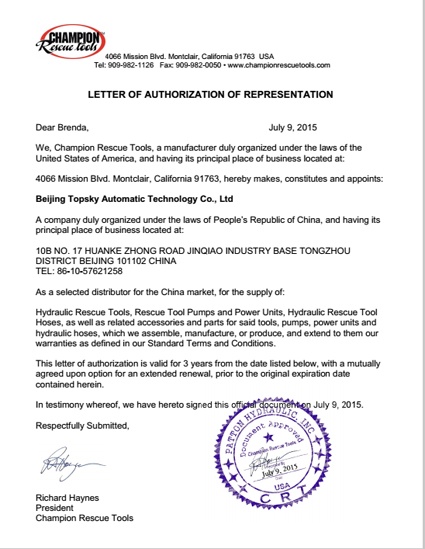 2015年7月9日,北京利盈娱乐成为美国CHAMPION公司八爪鱼破拆工具组总代理