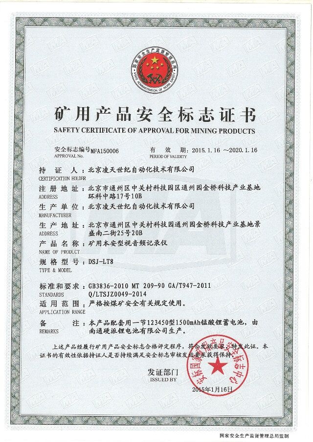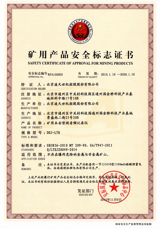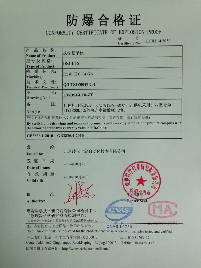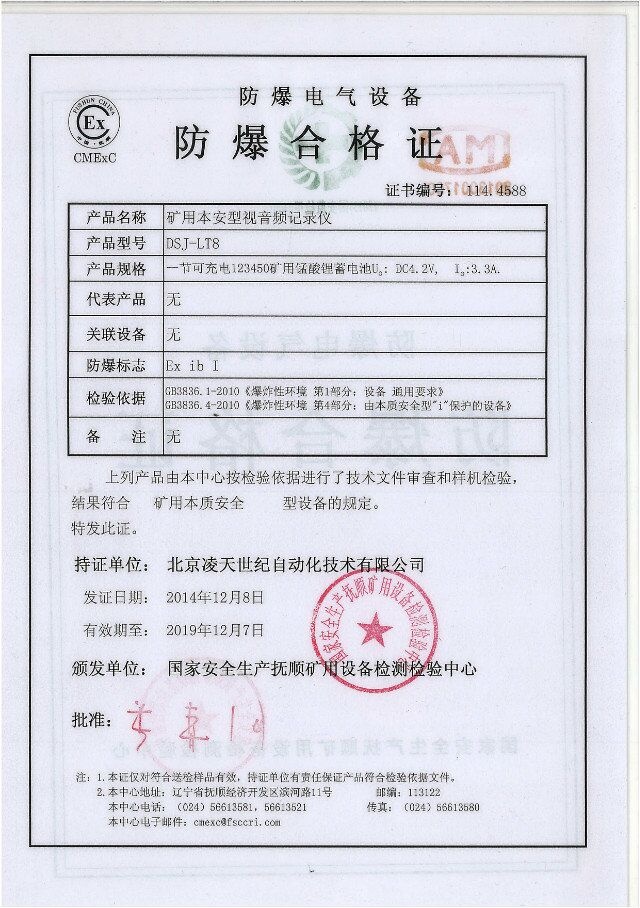 北京利盈娱乐防爆执法记录仪取得3c强制性认证、化工防爆、煤矿防爆、MA