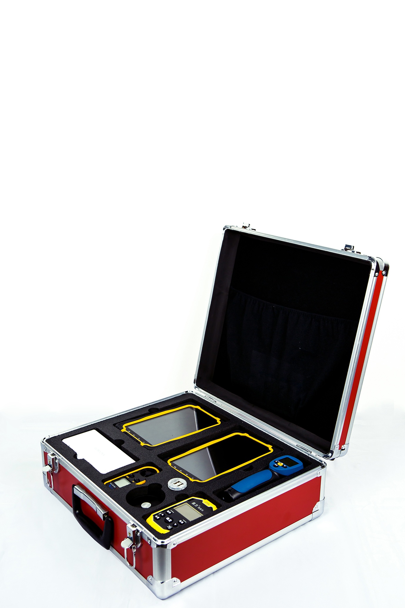 灭火救援指挥箱,将火灾现场需要的灭火救援预案、各类火灾扑救对策等辅助决策信息集成于指挥箱内的防爆便携式平板电脑(PDA)中,按照作战指挥流程,提供信息关联查询、语音提示、作战部署标绘等功能,面向基层消防指挥员,致力于现场指挥的实时性、针对性、有效性。指挥箱内配备仪器可实现测风速、风温、风量、温度、扩音等功能,可一键进入三项基本功能:火灾、抢险救援、信息查询。