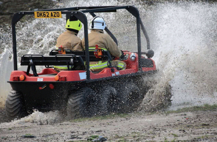 水陆两栖全地形车可提供一种安全的运输方式和可靠的运载平台,产品可以在山地环境、湿地环境、沼泽环境、水面环境、丛林环境等多种工作环境下,实现全天候连续作业。并且可以在灾害现场巡逻勘察、运送受伤人员、并有效实施援救。