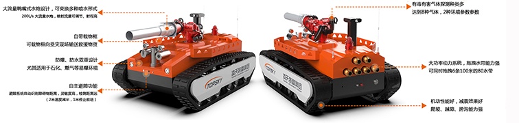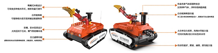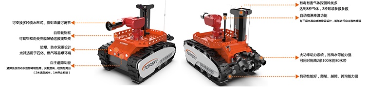 本产品具备灭火、音视频侦察、有毒有害气体侦察、灾区环境侦察功能;