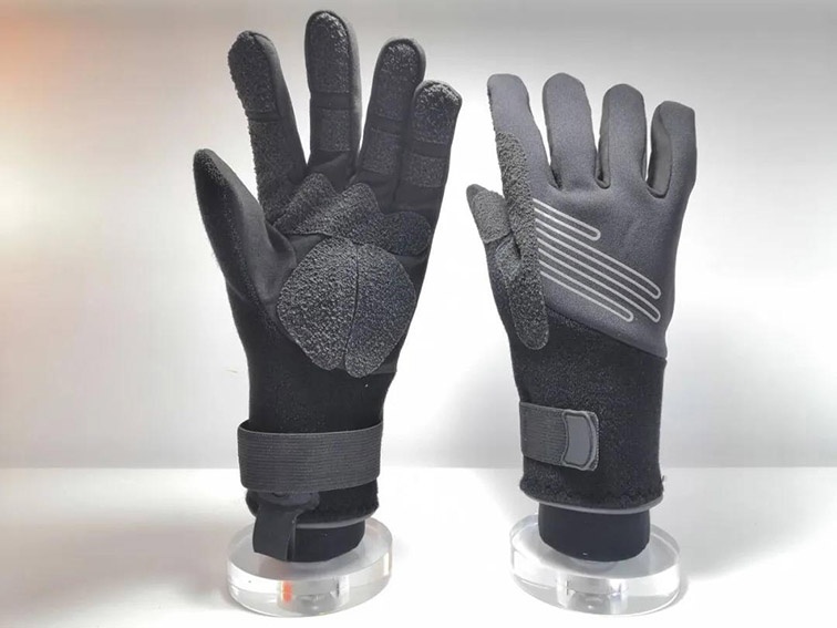 2.手心为合成皮革,并使用芳香尼龙纤维加强,增强耐磨性,手背由2mm厚的氯丁橡胶制成,起到保暖的作用,并加有2mm厚的衬垫,提供了额外的保护。