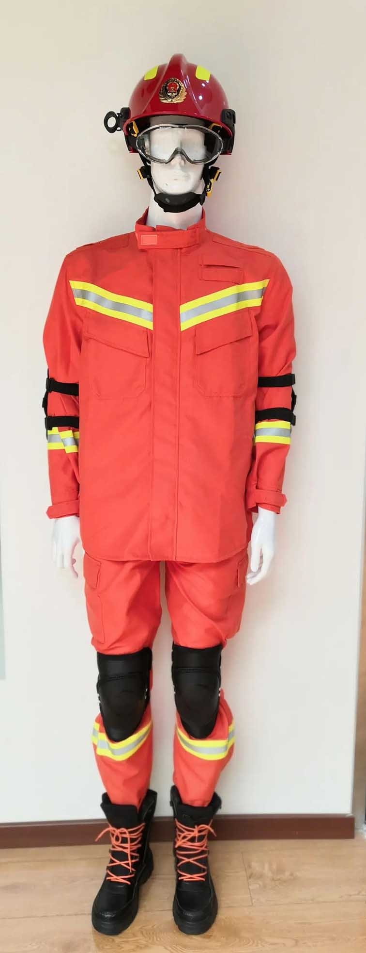 消防员抢险救援防护服用于建筑物倒塌、狭窄空间及攀登等救援现场的身体防护,采用国际上通用的结构形式,使用国外引进的纺纱、织造、缝纫和检测设备,用先进的纺织、整理工艺加工而成。