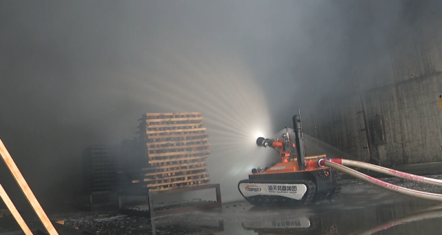 在有些情况下,我们消防人员无法深入长距离隧道,也包括有些石化品、交通事故火灾,我们人员进入,(会)造成消防制造员伤亡。