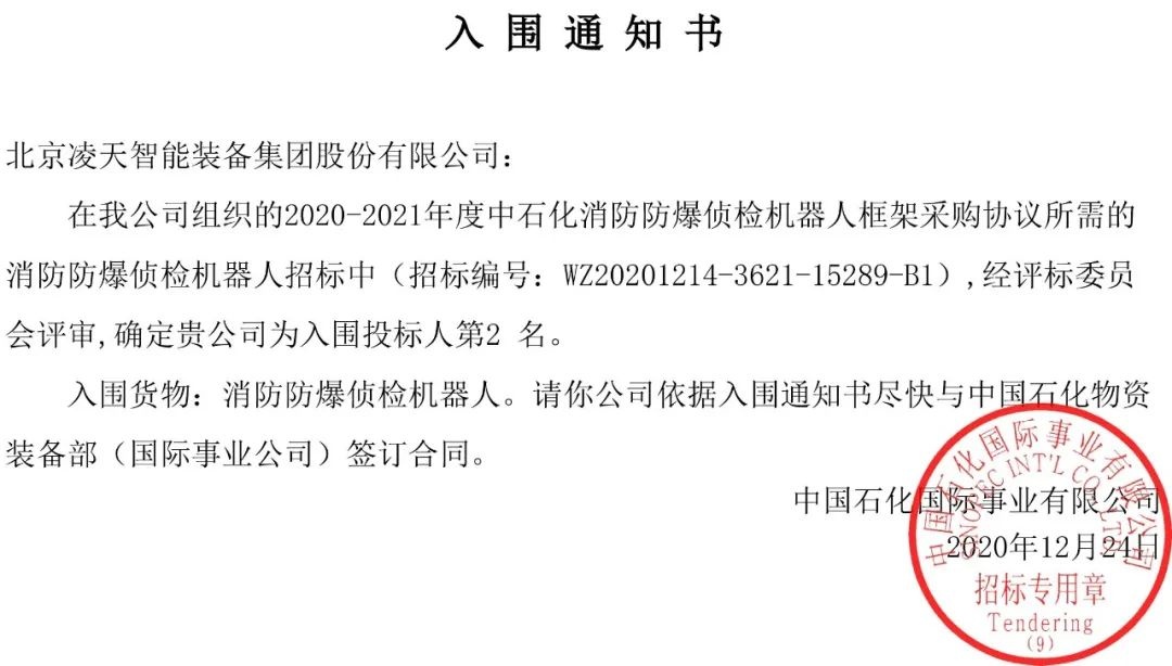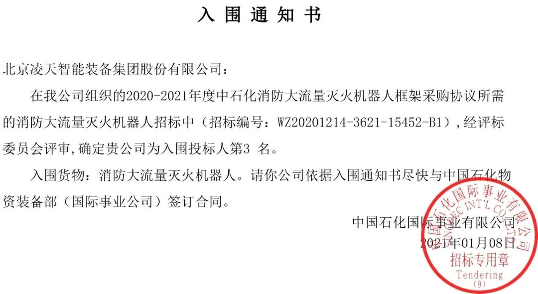 今日,从中石化天津国事了解到,北京利盈娱乐消防机器人全部中标入围中石化框架采购目录。