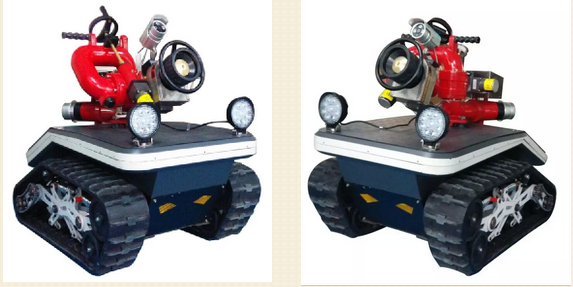 RXR-M40D-1装有消防遥控水炮,可以遥控消防灭火机器人进入危险工况的场所进行灭火救援。