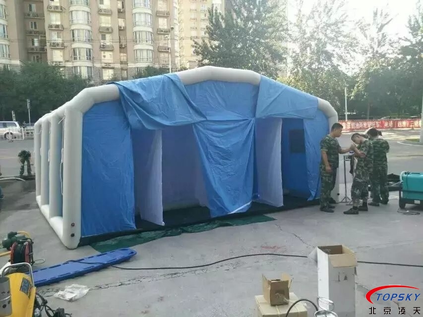帐篷可做临时会议室、指挥部、紧急救护场,内部可分割多个单间,使多个工作人员可同时按序进行洗消。