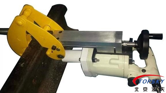 钢轨钻由主机、双重断水保护装置、进口硬质合金钢轨钻头、净化器、张紧装置等组成,液压胶管总成将气源和主机连接起来,经过净化的气源提供的气压驱动钢轨钻投高速钻进,进行切割。洒水冷却喷头和双重断水保护装置起到冷却和降尘的作用,保护机器正常运转。