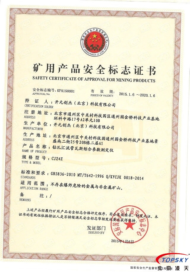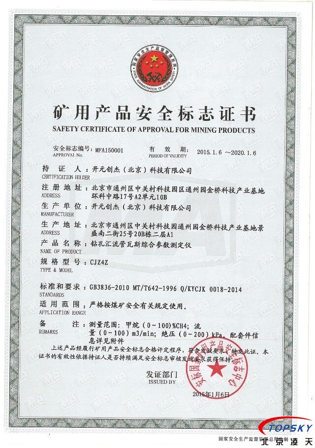3测定仪的本安参数: Ui: DC19.2V,Ii:250mA, Ci:0uF, Li: 0mH。