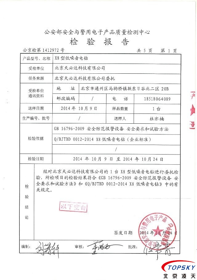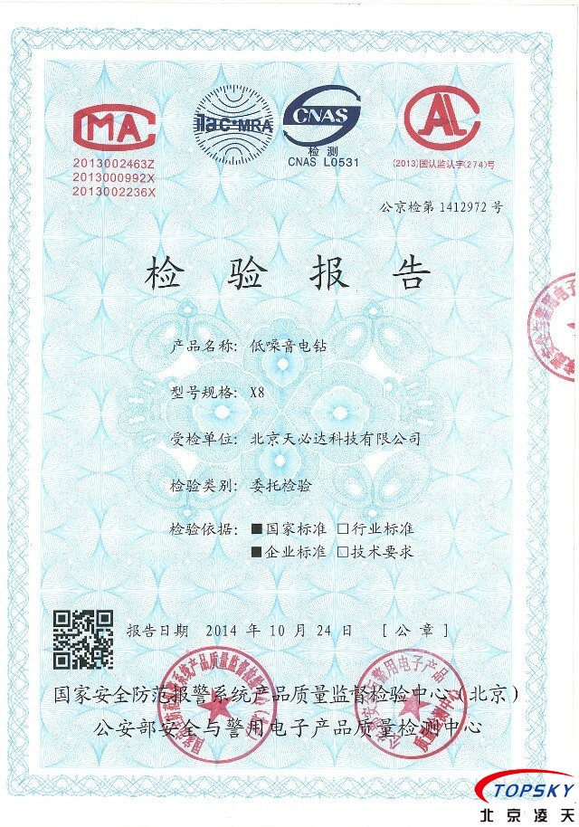 X8静音电钻 通过公安部权威机构检测