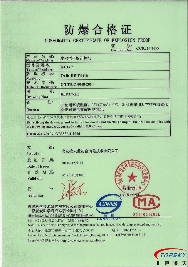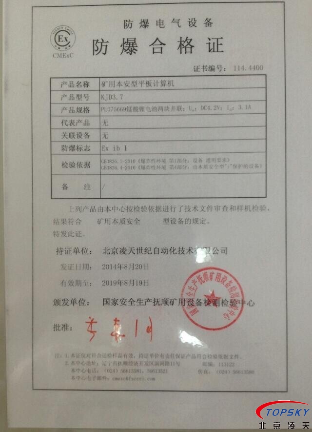 10)提供煤安认证原件、防爆认证原件
