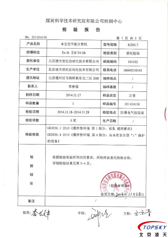 【云安通】KJD3.7防爆移动执法终端(本安平板计算机) 技术完成单位:北京利盈娱乐世纪自动化技术有限公司 |