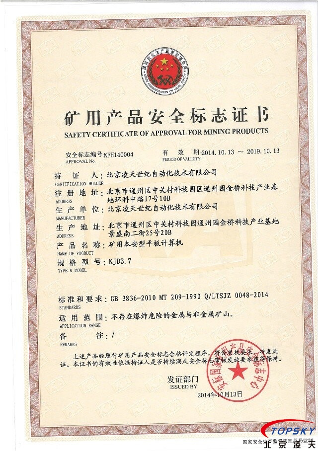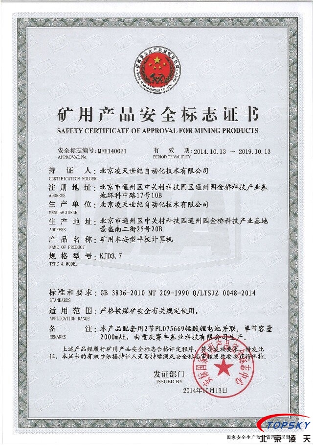 1)★认证:煤安认证、非煤矿山安标认证、防爆认证