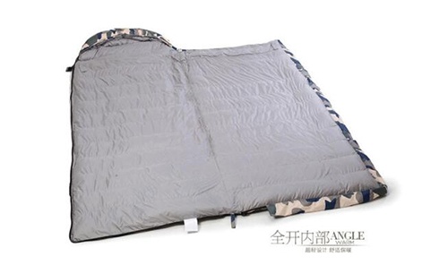 1、立衬式信封式羽绒睡袋,每两条羽绒睡袋可以拼接成一个双人睡袋。