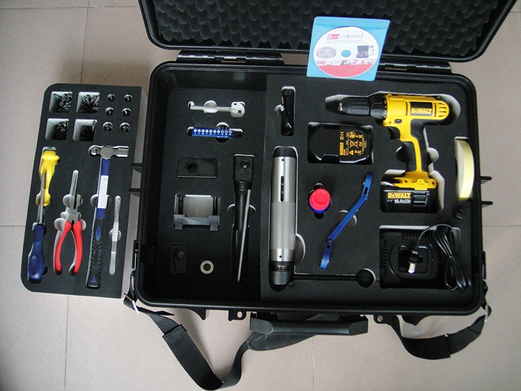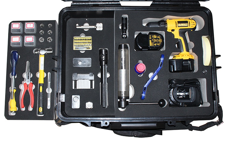 配置:专用电钻1套、专用钻头1套、专用螺丝1套、锁芯拔除器1个、锁芯切断器1个、换向扳手1个、锁舌转动器1个、定位器1个、辅助工具1套、