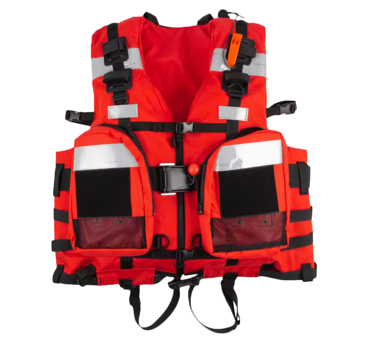 水域救援激流救生衣适配备自逃离系统,确保救援者遇到紧急情况时迅速脱离。适用于所有水面情况,浮力160N。救生衣衣身及每一圈提环均应能承受3200N 作用力,时间30min 而不损坏,救生衣肩部应能承受900N 的作用力而不损坏。浮力损失:救生衣在淡水中浸泡 24h 后,其浮力损失1%。通码,多条的腰腹固定带和肩部可调节固定带可以确保使用者舒适稳固,胸襟采用高强度 10#塑钢开口拉链;救生衣适用的胸围满足 700mm-1350mm;腿部固定,用于下摆固定,下摆带有连接点,用于连接腿部固定带,防止水流水浪将救生衣冲脱。环绕腰部的抛绳包应配有快速释放带,可挂载专用抛绳包。面料结实,采取优质防水面料600D尼龙牛津布,方形针织压力点和速干面料,整体紧凑简洁,缝制高亮反光片,便于夜间辨识,反光材料为海事级,方便在夜间查看,明显位置设置魔术贴,方便采购人粘贴标志标识。挂点丰富,具有多个前置和背部挂点激流背心前后6 个救援战术拓展外挂点(4 个 D 型挂点、2 个织带挂点),可挂载救援刀、口哨、荧光棒、定位灯、手台等多种配件。配备(不限于)牛尾绳、哨笛、示位灯各一个。
