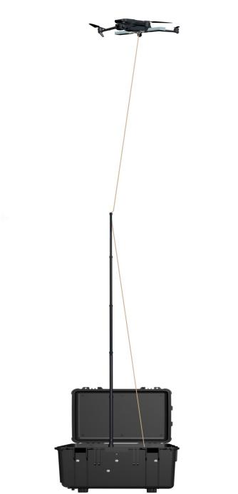 ?无人机能通过系留供电设备实现空中系留悬停,可持续为无人机供电;