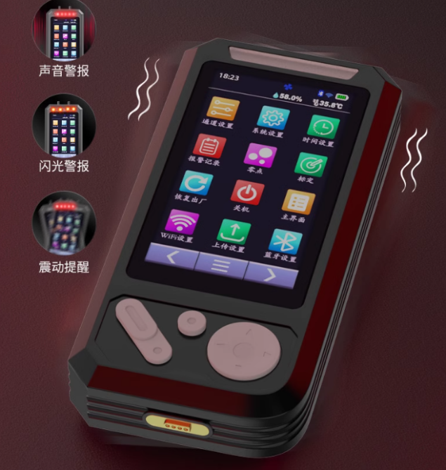 本产品可以对有限空间的八种危险气体进行检测,能清楚显示有害气体的低限、高限、时量平均浓度和短期时量平均允许浓度。