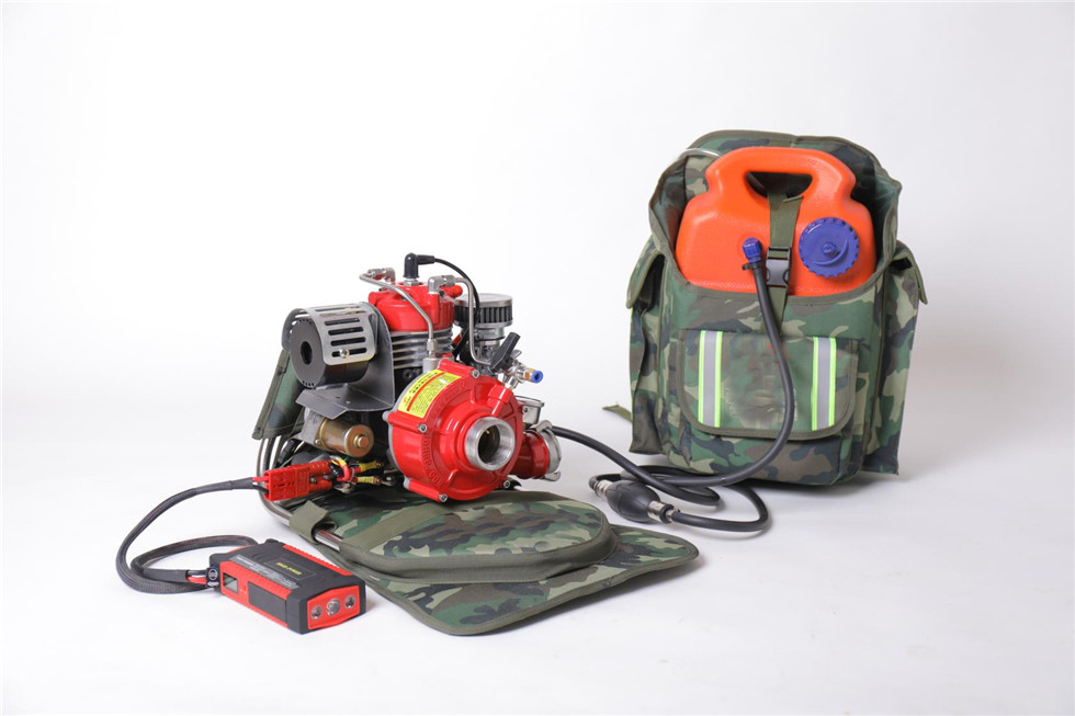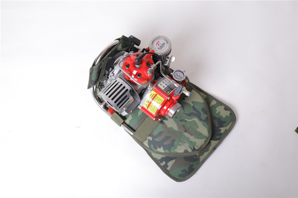 ⑿配有两套专用水泵和油箱的双肩高档背包,更方便携带和翻山越岭的行军,此背包可以快速拆卸,避免背带系统接触水源,防止消防员背负时弄湿衣服,冬季可减少衣服和背包结冰的几率。
