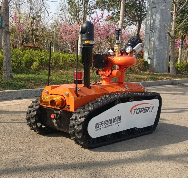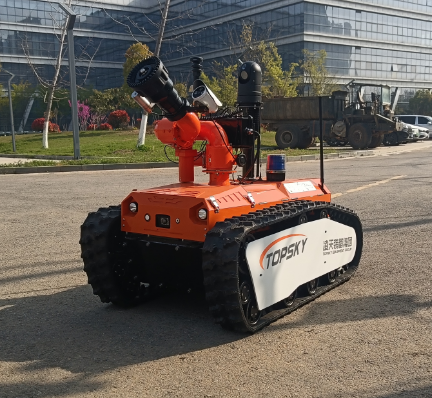RXR-M80D 消防灭火机器人作为特种机器人的一种,采用锂电池电源作为动力源,使用无线遥控的方式远距离操控消防灭火机器人。可使用于各种大型造纸印刷企业,隧道、地铁等不断增多的隧道、地铁坍塌等灾害隐患多发地,灭火机器人在抢险救援中发挥举足轻重的作用,主要替代消防员在大型火场或浓烟火灾现场救援的专用设备。本产品具备灭火、视频侦察、灾区环境侦察功能。