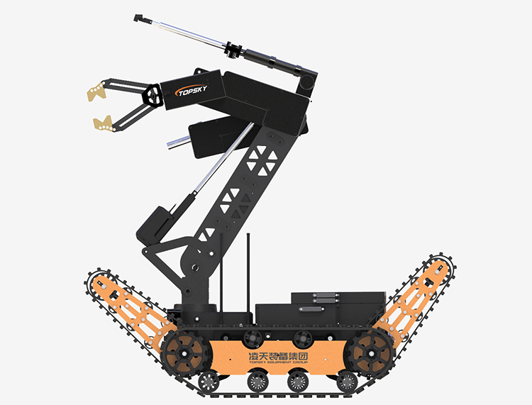 重型排爆机器人主要是用来处理爆炸物相关工作的排爆式机器人,也可用于侦察人难以达到的地形的一种机器人。6自由度排爆机械手能实现任意角度旋转,最大可抓举55KG的重物提升1m并转移,机械臂装载爆炸物销毁器,可现场摧毁爆炸物,底盘采用履带结构,能适应各种地形快速作战部署。同时机器人配备光纤自动放线机可以网络干扰情况下通过有线远距离控制。重型排爆机器人可与配件一同使用,包括销毁器(例如42mm),爆炸物的远程引爆控制系统等。