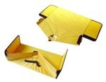 使用簸箕之前,首先用尼龙搭扣连接相关部位,叠合成簸箕形状将主绳挂钩挂着扣袢,使用完毕揭开尼龙搭扣又折成平板状放入箱内。