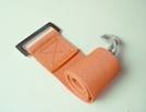 吊带由80×2的尼龙编织带和绵纶绳组成。绳子系在带子一端,带子另一端装有铁扣环。