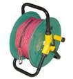 Φ5×120米的主绳绕在线盘上,绳端配有可卸的不锈钢弹簧挂钩。线盘上装有摇柄,收线时手握摇柄转动线盘,收线完毕可将摇柄可将摇柄取下,插在提把旁边塑料卡套内。