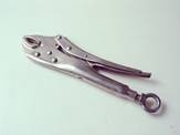 大力钳是由钢板制作,调整螺杆端配有一个吊环,钳口尺寸是可调整的。根据夹持物的大小,应事先调整钳口尺寸,右旋螺杆钳口变小,但不能<170mm, 不然夹持功能失效。夹钳在夹紧物体之后能被锁紧,用绳索滑轮和吊钩可将其牵引。