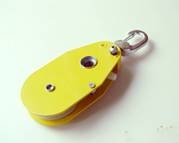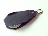 撑杆来吊挂滑轮时,(如墙角处,或大面积墙体附近)将楔钉楔入墙体能将主锁挂在楔钉孔上,主锁可直接穿入尼龙绳做为定滑轮使用,光滑的外圆表面不会对绳索产生过大的磨损。