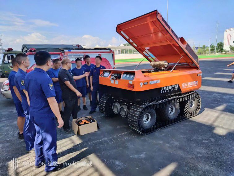 履带式消防应急供排水机器人防汛水泵是集柴油机、动力站、液压潜水泵、履带机器人、遥控控制系统、液压动力系统为一个整体、使其能运用与一些特殊的工况环境使用,例如底下车库、依然易爆环境、无电源无动力的环境需要临时大流量排水时用该系列履带式消防排水机器人效果明显。