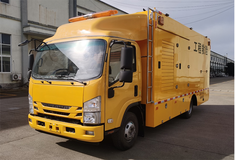 大流量排涝车(2400m?),是在庆铃二类汽车底盘的基础上,安装一体式车厢并配置柴油发电机组、大流量便携式潜水泵及控制系统、照明系统等设备改装成型的专项作业车。
