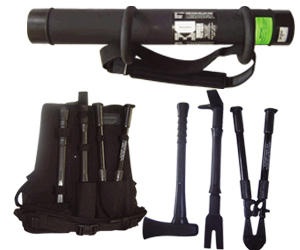 破门工具背包 (DE-TBK):包括DE-SOHT铁笔 、DE-BM剪钳、DE-TM铁斧、背包袋。(背包为1000 Denier NyTaneon 尼龙物料,铺有护背海绵和可调式肩带。);全套总重11公斤