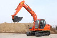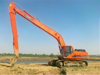 采用四驱履带式底盘,履带行走机构与底盘车架之间为活动连接,并装有减震和涨紧装置,行走机构分别由4组液压马达驱动(马达为原装进口),可全地形行驶,机动灵活,可原地转向,越野能力强;