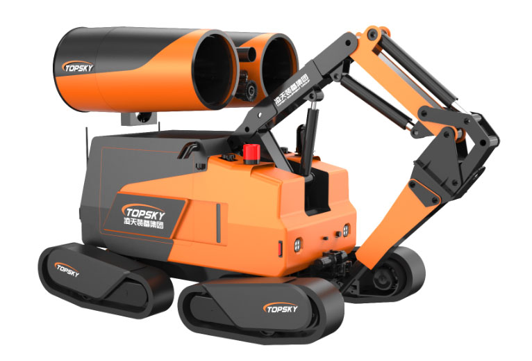 采用柴油发动机为动力源,使用液压传动系统驱动,具有极强的综合救援和灭火性能,主要针对于石油化工类火灾、烟花爆竹类火灾、仓库不明物火灾以及具有易燃易爆、有毒、缺氧、浓烟、有倒塌、强辐射等特殊危险的救援场所,救援人员不便于接近事故现场的灾害处理,可有效减少灾害处置处置过程中可能造成的救援人员的生命威胁。也可以遥控机器人进行建筑拆除、混凝土钻切、隧道开挖、抢险救援、本产品具备远程操控、全景显示等功能,同时具备超高的越野性能;集成式液压刹车装置,可有效驻车刹车,防止整机溜车。