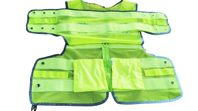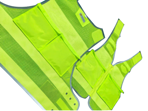 具有整洁美观,平服的特点,线路规整,左右对称,无开线、断线、跳线、毛露、线头、污渍、残疵。产品基底颜色为荧光黄色;反光带颜色为银白色;缝纫线颜色应与缝合部位的基底材料或反光材料颜色相匹配;前后晶格标识可丝印定制文字