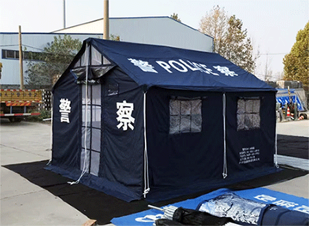 警用帐篷可用于户外执勤时的临时办公、人员休整,也能在应急处突时充当临时指挥点或物资存放处,为警务相关活动提供基础遮蔽支持。