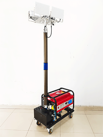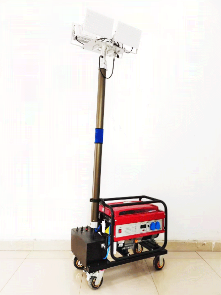 3.可直接使用发电机组供电,也可接通220V市电长时间照明;采用发电机组供电次注满燃油连续工作时间可达8小时以上。