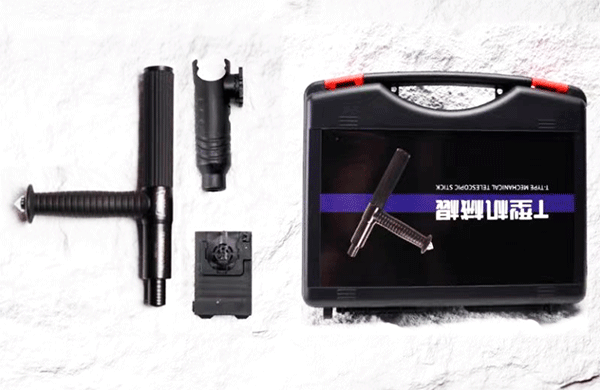 T型警棍又称拐式警棍、丁字棍,通常采用工程塑料或高强度合金钢等材质,由棍体及T型端组成,棍体分为握持端和击打端,整体呈T字形。通过独特设计,使其兼具攻击与防御功能,是警务人员常用的制服、自卫、自救制式警械。