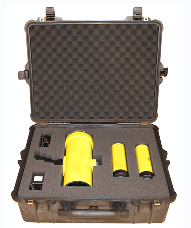 手持声纳设备为便携式、组合式的声纳系统,由声呐发射器和声呐接收器两部分组成,可实现发射和接收的操作。声呐发射器可为潜水员在水下定位水下物体。工作深度100m,顶部带有指南针,方便在水下辨别方向, 整体为醒目的亮黄色,接收器带有枪式握把,潜水员可单手操作接收器。