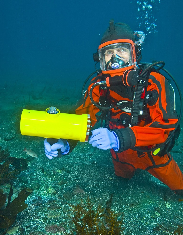 手持声呐探测仪既可以潜水员手持也可以从船上往下放。接收器的操作非常简单,您只需要选择需要扫描的频率,然后在360度范围内扫一圈。就会有声音和警示灯信号用来提醒操作人员有目标信号源的存在。一旦检测到目标频段的信号,潜水员就可以通过安装在接收器上的指南针朝着目标方向游动,越是接近目标物体时声音信号越强,控制器上的LED 灯的亮度灯泡点亮的数量越多。如果要定位其他的发射源,只需要通过控制面板上的旋钮调节频率即可。