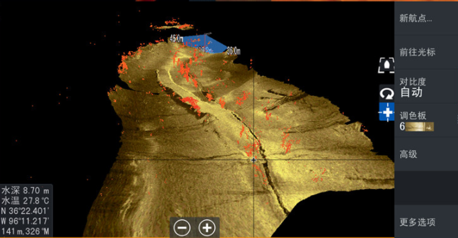 3D动态探头:带有水下 3D 实时动态成像、绘制水下实时探测画面功能,带有下扫、前扫、前平扫等模式,实时侦察追踪目标物。