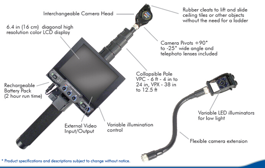 标配彩色摄像头配备4个LED照明灯,利于黑暗区域进行彩色图像搜查
