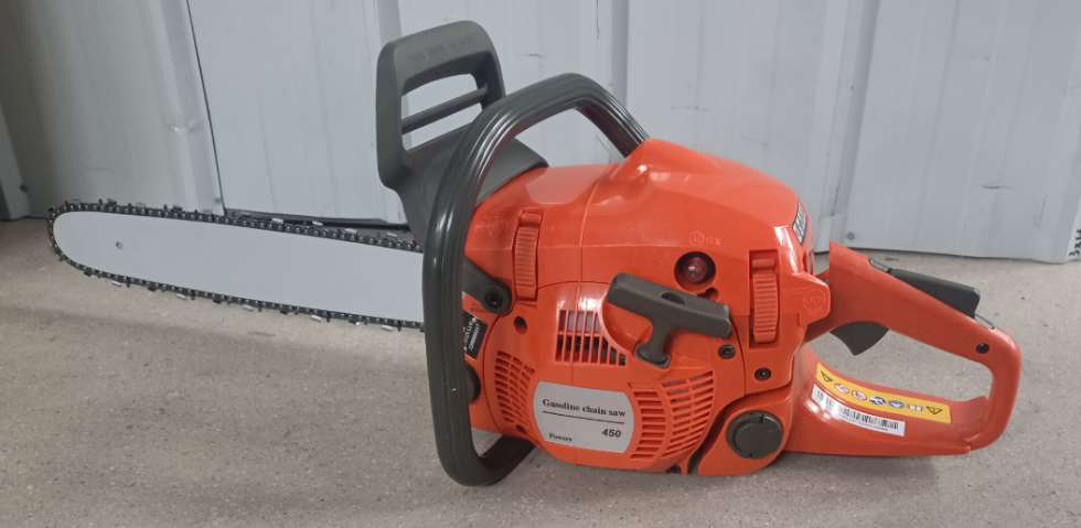 木锯切割机也称油锯,是以汽油机为动力的手提锯,主要用于伐木和造材,其工作原理是靠锯链上交错的L形刀片横向运动来进行剪切动作。