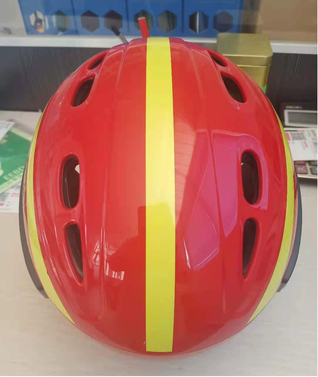 头盔头顶及两侧装配反光条